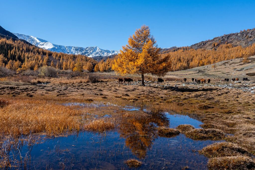 The park is dominated by the legendary Tavan Bogd Mountains, meaning “Five Sacred” in Mongolian. These peaks include the five highest mountains in Mongolia, revered as sacred by local Tuvan and Kazakh communities.